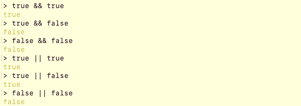 논리곱 연산은 두 값이 모두 true로 평가되어야 true 를 반환하고 논리합 연산은 두 값이 모두 false로 평가되어야 false를 반환한다