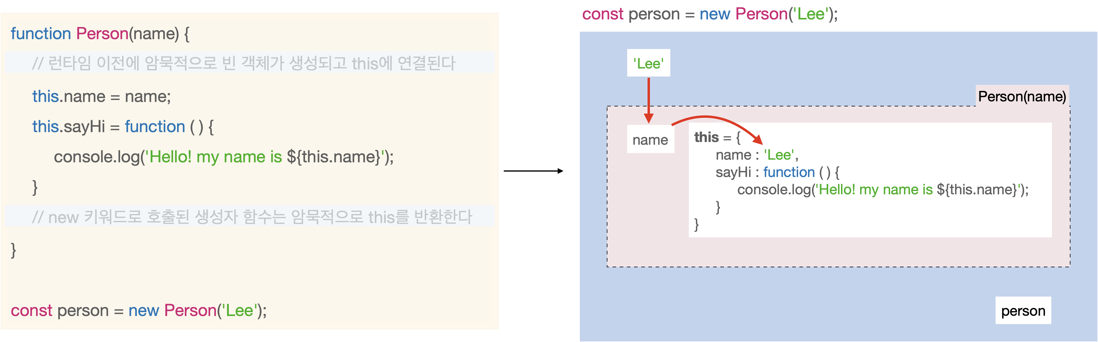 그리고 이렇게 생성된 빈 객체가 this와 연결된다