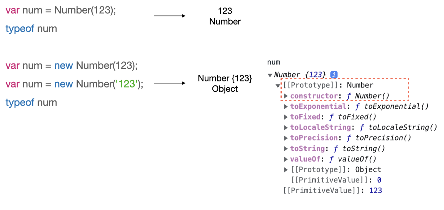 Number의 경우도 new 연산자와 함께 호출하면 Object를 만들어내는 것을 확인할 수 있다.