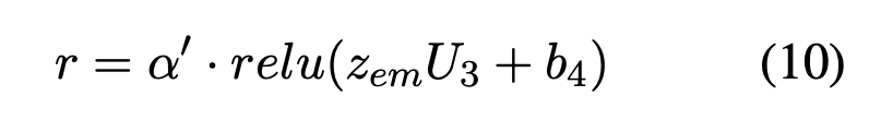 이때 dot product연산 이전에 $z_{em}$에 relu activation function을 갖는 fully connected layer를 추가하여 model capability를 늘리고 $z_{em}$차원에 변화를 줍니다.
