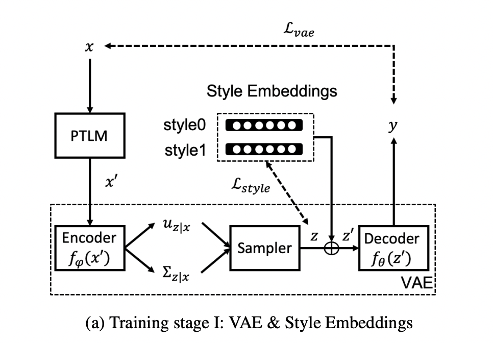 여기서 style embedding은 동일한 스타일에 속하는 문장에서 추출된 latent feature와 높은 관련이 있어야 한다고 가정됩니다.