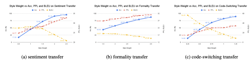 즉, $w$는 PPL/BLEU와 transfer acc간의 trade-off hyper parameter입니다.